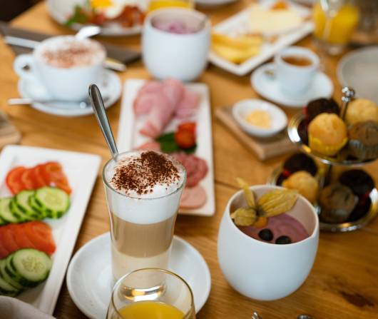 Kreiere deine perfekte Bowle an der Müeslibar und glänze auf Instagram. Schnapp dir ein Latte Macchiato und stöbere auf dem Sofa in Büchern. Genisse dein Chäsplättli mit Sicht auf's Weisshorn und plane dein Outdoor Adventure im Goms. Gönne dir einen Cheatday und versuche einen Muffin oder doch zwei. Feiere die erholsame Nacht mit einem Glas Prosecco zusammen mit deinen Liebsten. Sei du selber und gestalte deinen Start in den Tag individuell. Für alles andere ist unsere Crew da.