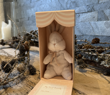 Mein erster Hase ist perfekt für kleine Hände gemacht. Es ist aus weichem Plüsch gefertigt und hat ein farbiges Band um den Hals.ls. > ...