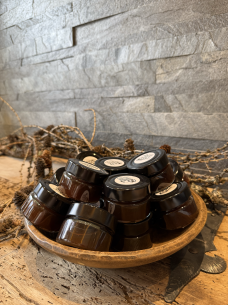 Durch den Zuckersirup werden die Nüsse tiefschwarz. Dünn aufgeschnitten zu einem milden Weichkäse, entfaltet sich die voll süsse der Nüsse. Ein hingucker auf jeder Käseplatte.