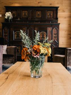Contemporary design meets regional traditional elements. Natural materials, predominantly wood and warm colours define the LANDHAUS. A fragrance concept with a fresh, spicy & woody note enriches the rooms. Individual pieces created by creative minds are presented on the way through the Landhaus and serve as a platform for the artists to express living art. A place to linger and enjoy - alone or with your best friends. For more than 30 years, our values have stood for a culture of care that is practiced sustainably.