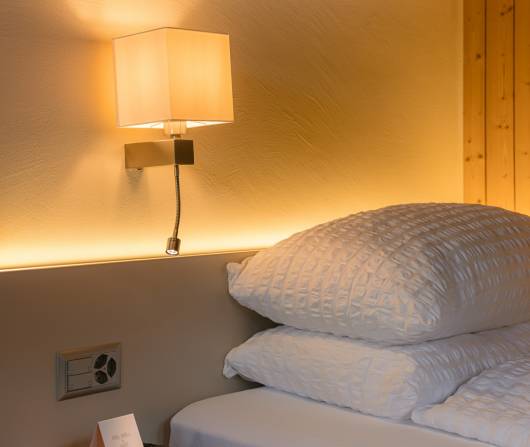 Are you travelling as a couple or with your baby? A flat-screen TV, a Nespresso machine and much more await you. Enough space to relax after a busy day or just to unwind. To top it off, your room has a balcony with a stunning view of the Goms mountains.